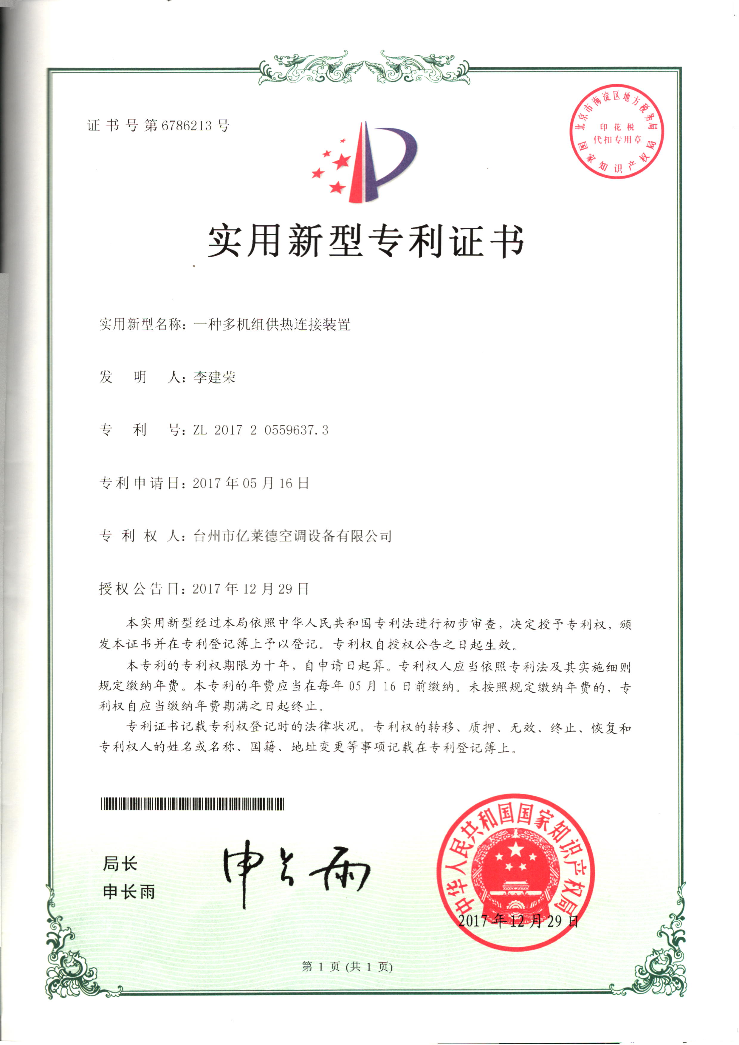 實用型專利證書
