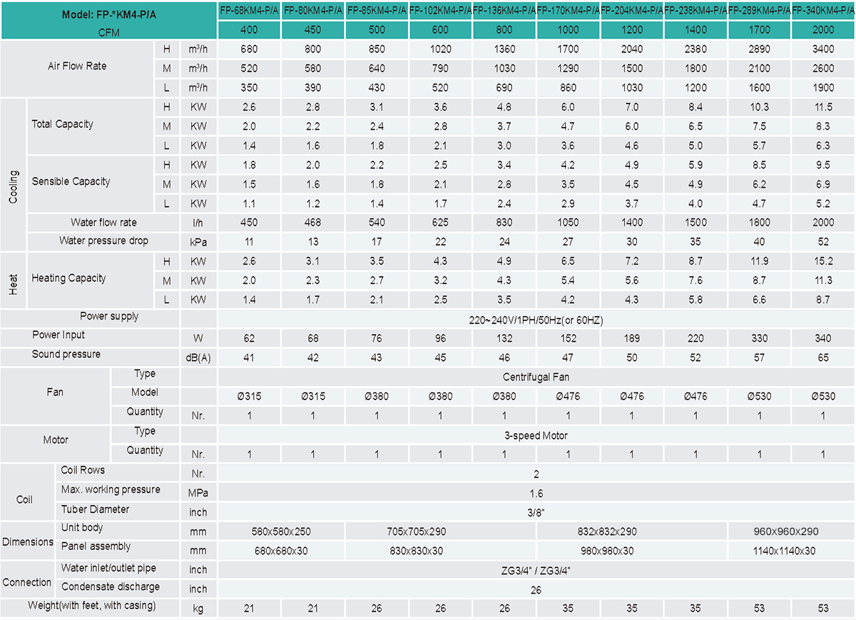 700mm head drain pump with no return valve is installed in the unit; an float switch inside as well to prevent from leaking. If the water raising to a certainly position, the float switch will act and alarm, then the unit will cut off the water valve or stop the fan motor.